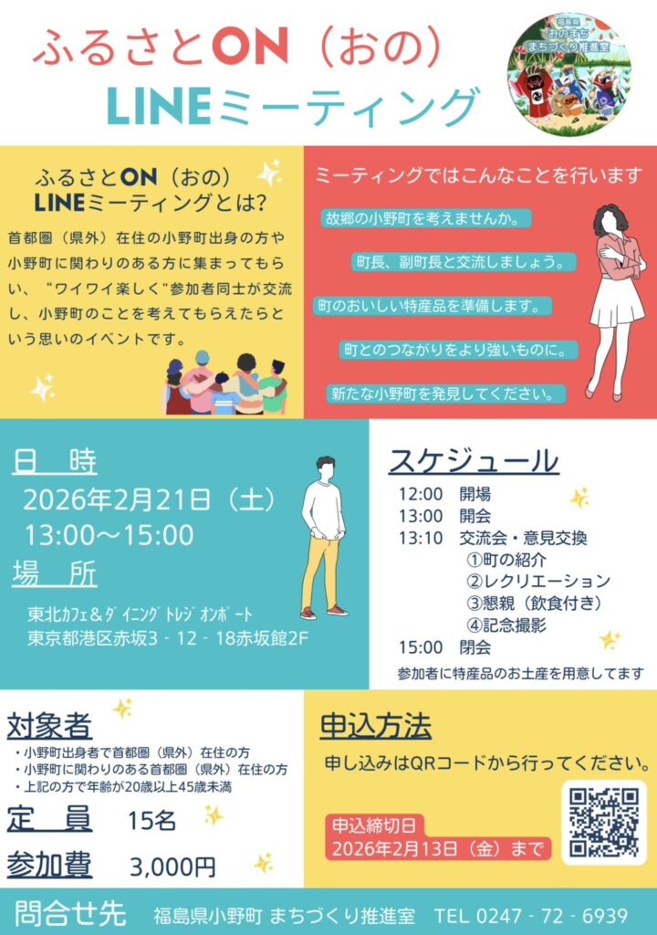 2/21(土)13:00から福島県小野町のイベントを開催いたします!